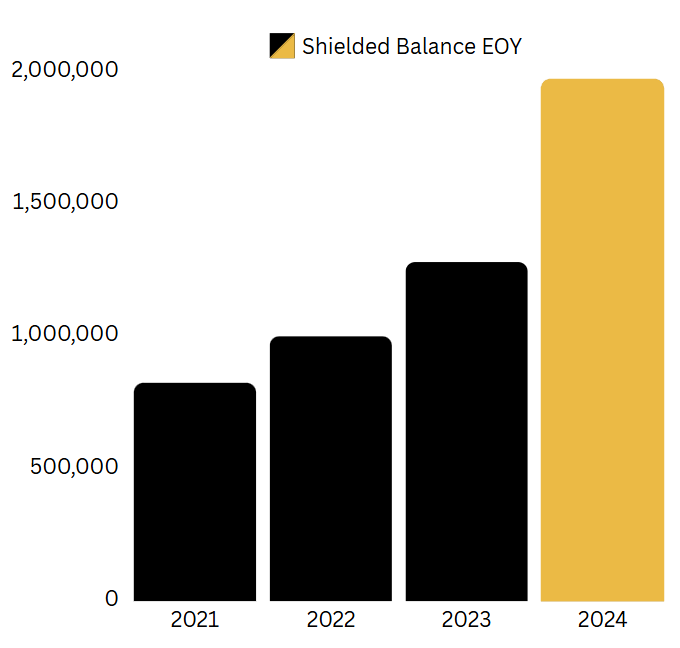 Zcash continues to be listed and supported by Coinbase, the biggest and most connected US-regulated crypto exchange. Its ZEC/USD volume doubled between 2024 H2 and 2023H2. Zcash is also available as a financial instrument through ZCSH, a Grayscale Fund that currently holds 394k (U$22 million) and saw its volume soar over 300% between 2023 and 2024.